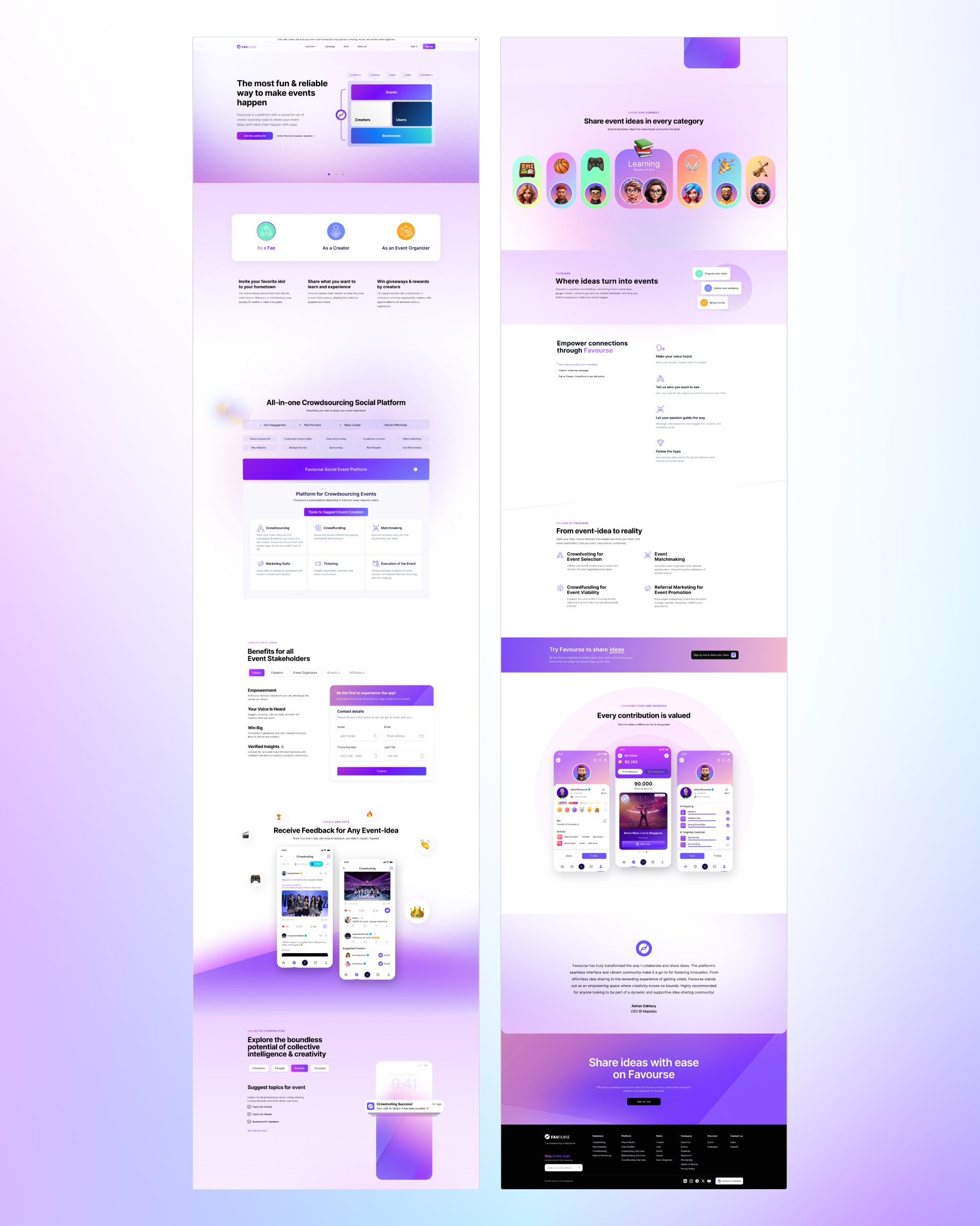 The marketing website serves as the public face of Favourse, introducing the platform’s mission, features, and success stories. I implemented a modular layout with smooth scroll interactions and clear calls to action to encourage sign-ups and platform exploration.
