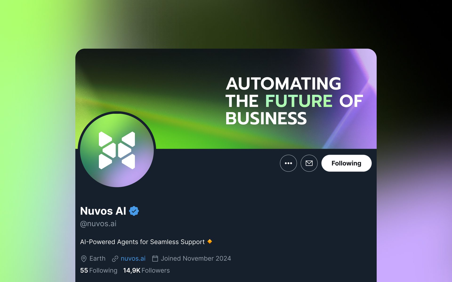 Nuvos is an AI agent service that helps businesses automate workflows, customer experiences, and digital operations with intelligent, human-like agents. Nuvos empowers modern teams to scale efficiently without losing the personal touch.