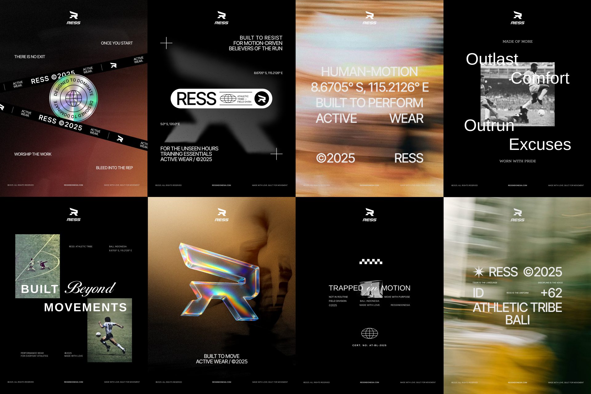 To achieve this, I focused on building a clear visual language rooted in motion, strength, and unity. Every design decision, from the logo elements to the color choices, was made to reflect the spirit of high-performance sport while remaining practical for real-world application. The result is a flexible and bold identity system that elevates the RESS brand across every level of the game.